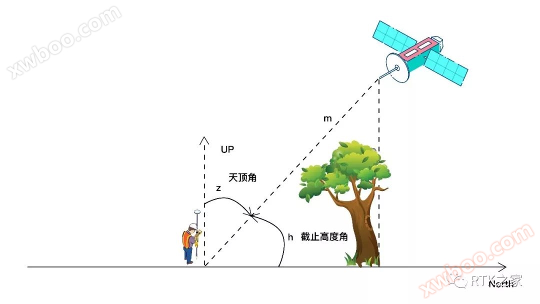 这么说大家容易理解一点,截止高度角其实就是高度角,可以把m当做截止线,因为卫星发射出来的信号被树挡住了,我们需要设定一个角度来屏蔽这个信号,就设h为截止高度角,屏蔽这个角度内的所有卫星信号。