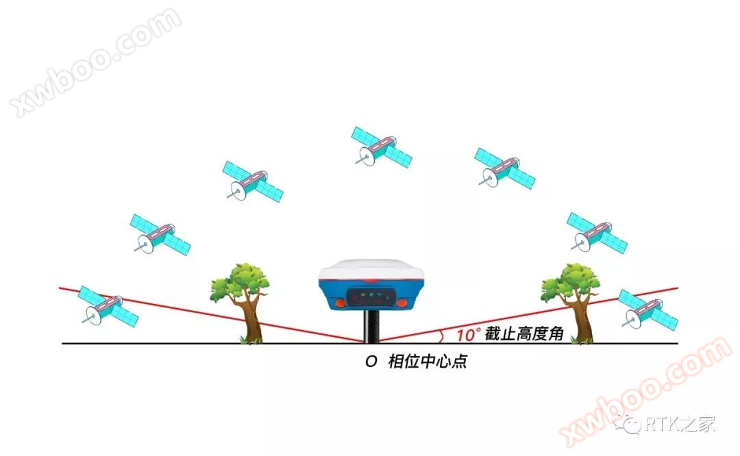 低角度的卫星信号干扰都会比较大(树木的遮挡等干扰),所以一般要求在进行RTK测量的时候需要调整截止高度角到合适角度,尽量不要使用低角度的卫星。这就是前面所说的为什么要屏蔽掉这些信号的原因。